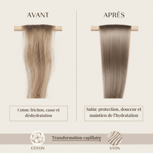Le satin glisse doucement sur vos cheveux, réduisant la casse et les frisottis.
